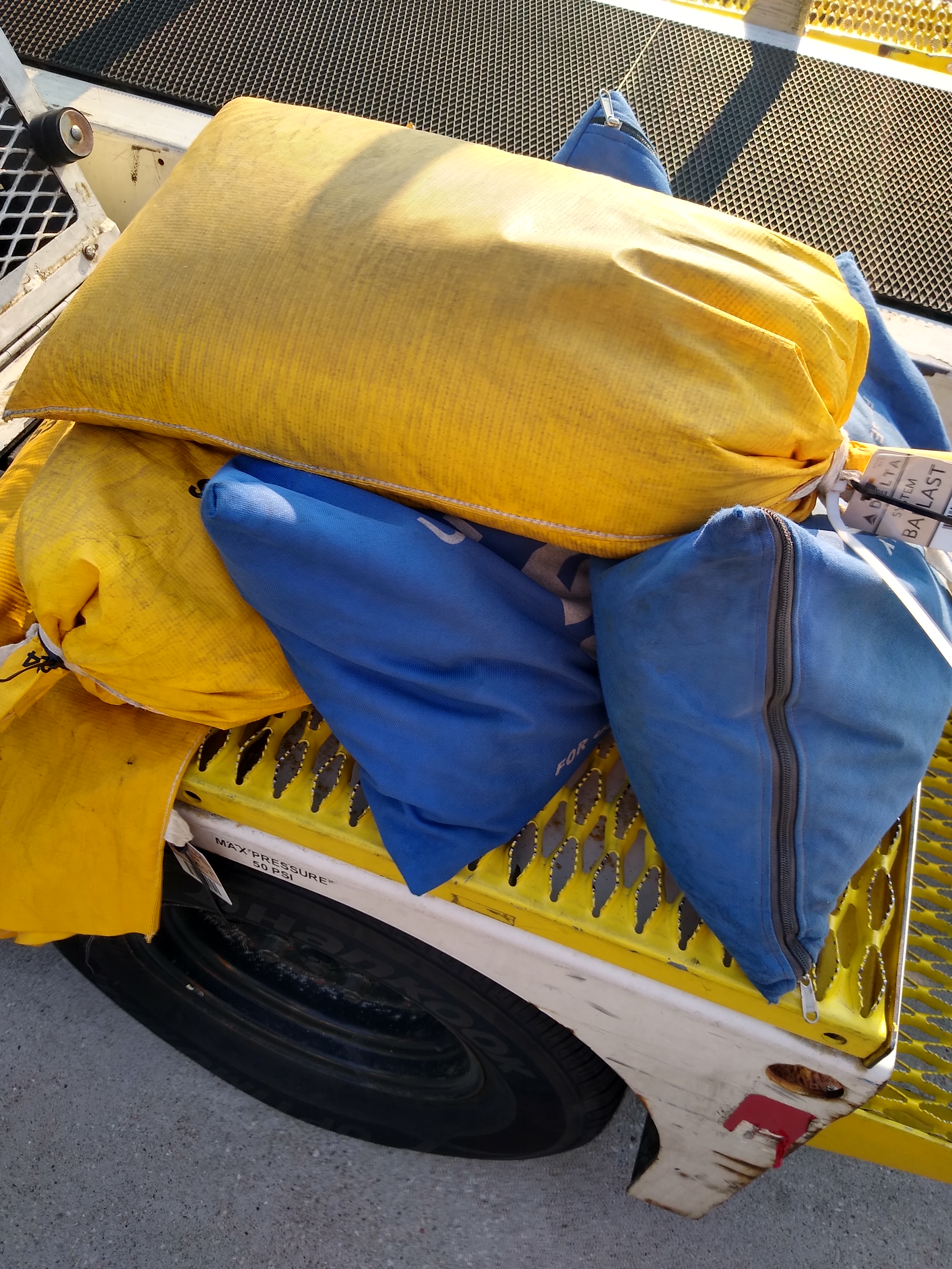 A lot of flights on the CRJ200 require ballast to maintain a good center of Gravity. Depending on the flight it either shows itself as sand bags or rubber coated weights. This day (08/03/24) it was sand bags: